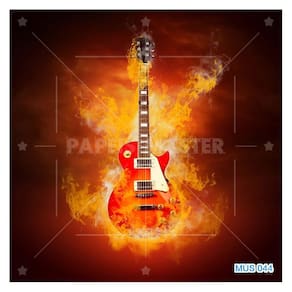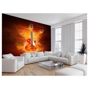 Papel De Parede 3D Musica Guitarra Fogo Chamas 3,5M Mus44
