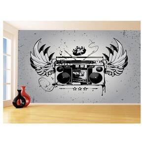 A impressão é feita em vinil adesivo. É um material lavável, impermeável, autocolante e antimofo. O produto cobre uma área de 3,50m, contando com 1,75 metro de altura por 2 metros de largura.