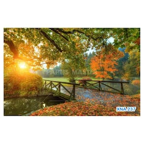 Papel De Parede 3D Outono Ponte Folhas Água Rio 3,5M Xna237