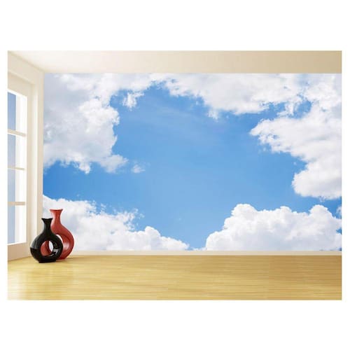 Papel De Parede 3D Paisagem Céu Azul Nuvens 3,5M Nsk117