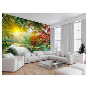 Papel De Parede 3D Paisagem Lago Ponte Parque 3,5M Nlk155