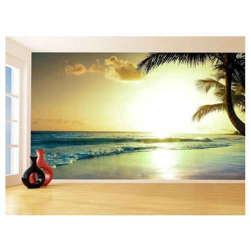 Papel De Parede 3D Praia Mar Coqueiros Céu Sol 3,5M Npr337