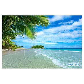 Papel De Parede 3D Praia Mar Onda Coqueiros Céu 3,5M Npr258