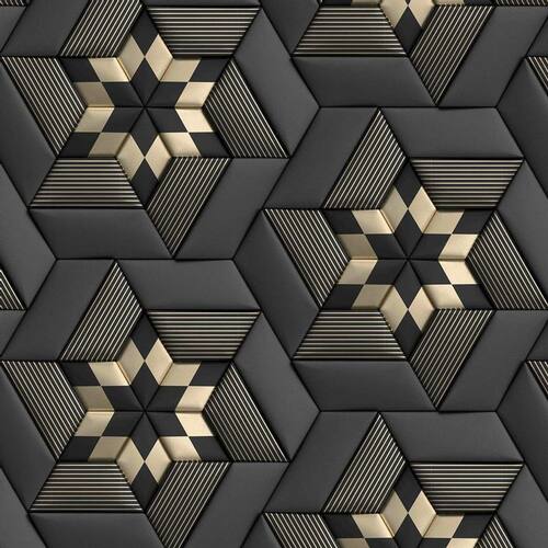 Papel De Parede 3D Preto E Dourado Geometrico Autocolante