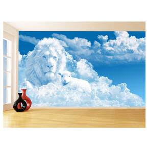 Papel De Parede 3D Religioso Leão Cordeiro Nuvem 3,5M Rl95