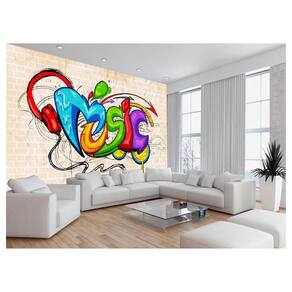 A impressão é feita em vinil adesivo. É um material lavável, impermeável, autocolante e antimofo. O produto cobre uma área de 3,50m, contando com 1,75 metro de altura por 2 metros de largura.