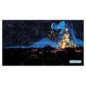 A impressão é feita em vinil adesivo. É um material lavável, impermeável, autocolante e antimofo. O produto cobre uma área de 3,50m, contando com 1,75 metro de altura por 2 metros de largura.