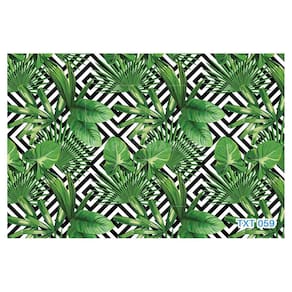 A impressão é feita em vinil adesivo. É um material lavável, impermeável, autocolante e antimofo. O produto cobre uma área de 3,50m, contando com 1,75 metro de altura por 2 metros de largura.