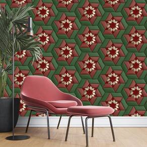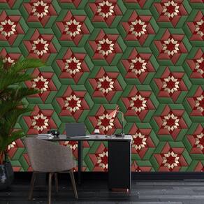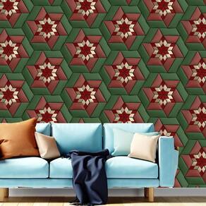 Papel De Parede 3D Verde Vermelho Geométrico Autocolante