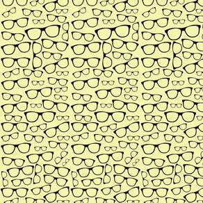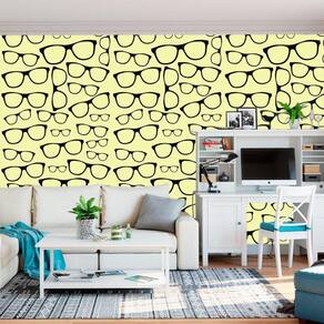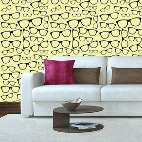 Papel de parede adesivo amarelo e desenhos de óculos preto