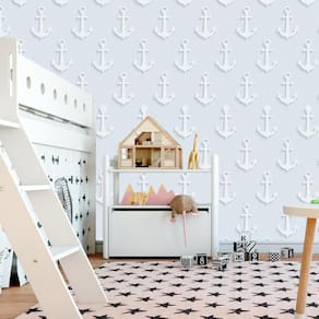 Papel de parede adesivo azul claro e ancora infantil bebê