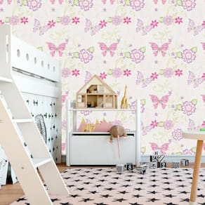 Papel de parede adesivo borboletas e flores quarto infantil