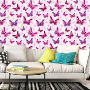 Papel de parede adesivo borboletas lilas e rosas sala quarto