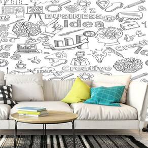 Papel de parede adesivo branco com desenho estudante preto