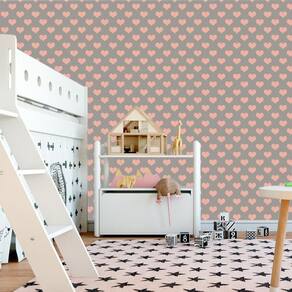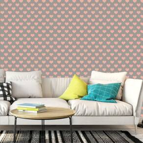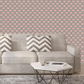Papel de parede adesivo decorativo cinza com corações rosa