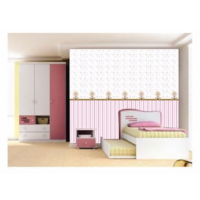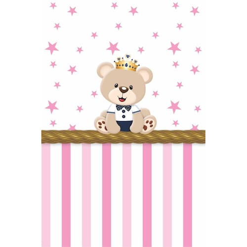 Papel De Parede Adesivo Infantil Ursinho Rosa 300X52Cm