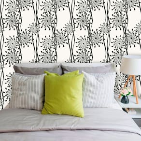 Papel de Parede Adesivo Lavável Floral Preto e Branco