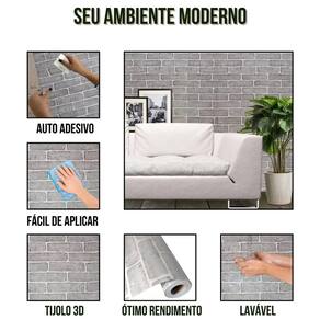 04 Papel de Parede Adesivo Lavável Tijolos 3D Cinza 5m x 45cm