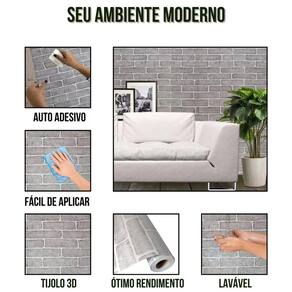 01 Papel de Parede Adesivo Lavável Tijolos 3D Cinza 5m x 45cm
