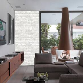 Papel De Parede Adesivo Tijolo Pedra Branca Rústico 300X52Cm