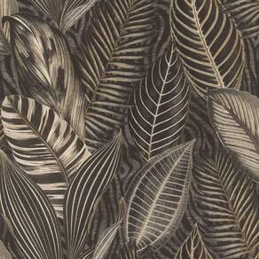 Papel De Parede African Queen Iii Folhagem Dourado E Preto 751833