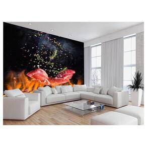 Papel De Parede Alimentos Carne Churrasco Fogo 3,5M Al279