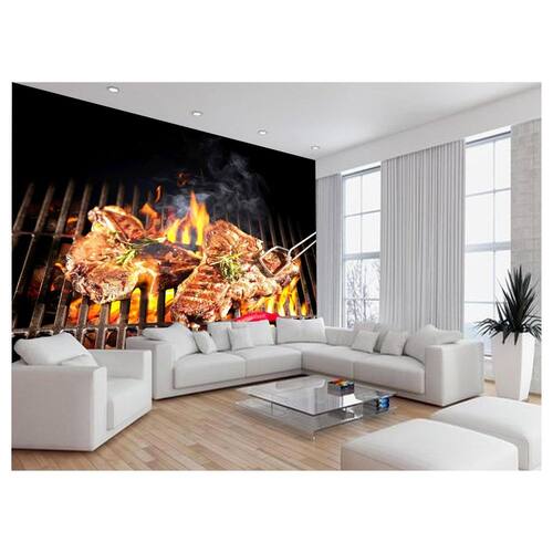Papel De Parede Alimentos Carne Churrasco Fogo 3,5M Al307