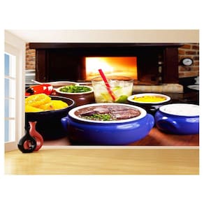 A impressão é feita em vinil adesivo. É um material lavável, impermeável, autocolante e antimofo. O produto cobre uma área de 3,50m, contando com 1,75 metro de altura por 2 metros de largura.