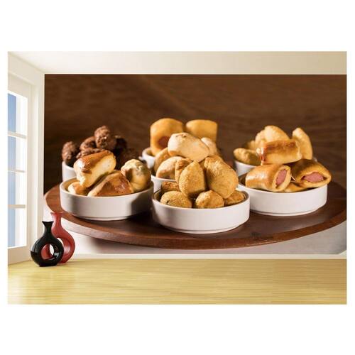 Especificações Técnicas Marca: Você Decora Modelo: Alimentos Salgados Coxinha Bar Código: AL515 Material: Vinil adesivo Papel autocolante: Sim Medidas A x L : 1,75 x 2,0 m Conteúdo da embalagem: 1 Papel de parede 1,75 x 2,0 m