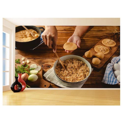 A impressão é feita em vinil adesivo. É um material lavável, impermeável, autocolante e antimofo. O produto cobre uma área de 3,50m, contando com 1,75 metro de altura por 2 metros de largura.