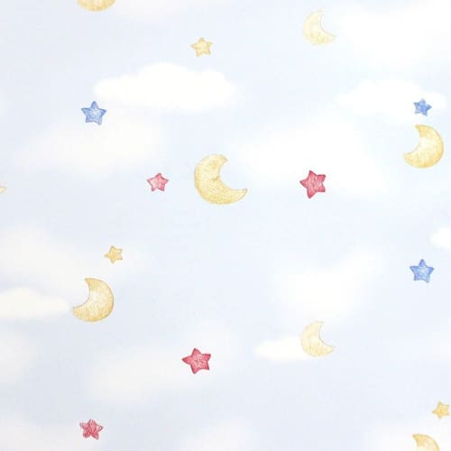 Esse Papel de Parede contém um poder de estimular os sonhos. As estrelinhas e luas parecem flutuar sobre um delicado fundo de nuvens. As crianças vão se diir e sonhar, de forma a crescerem felizes e saudáveis.