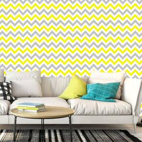 Papel de parede amarelo cinza e branco chevron adesivo sala