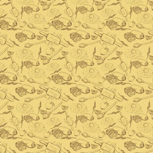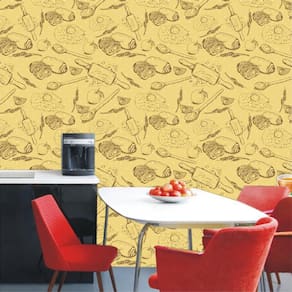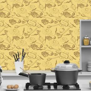 Papel de parede amarelo desenhos ovos e pães adesivo lavável