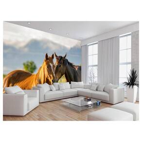 Papel De Parede Animais Casal Cavalos Fazenda 3,5M Anm305
