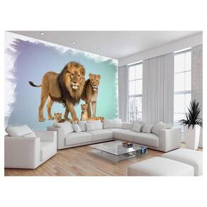 Papel De Parede Animais Leão Família Filhotes 3,5M Anm522