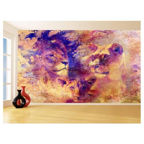 Papel De Parede Animais Leão Família Filhotes 3,5M Anm531