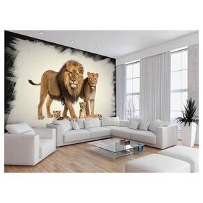 Papel De Parede Animais Leão Família Filhotes 3,5M Anm532