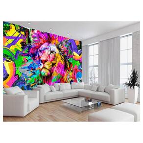 Papel De Parede Animais Leão Rosto Arte Cores 3,5M Anm461