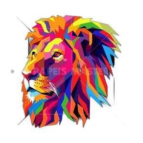 Papel De Parede Animais Leão Rosto Arte Cores 3,5M Anm476