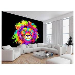 Papel De Parede Animais Leão Rosto Arte Cores 3,5M Anm491