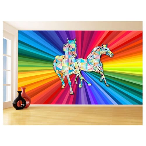 Papel De Parede Animais Pop Art Cavalos Cores 3,5M Pxa362