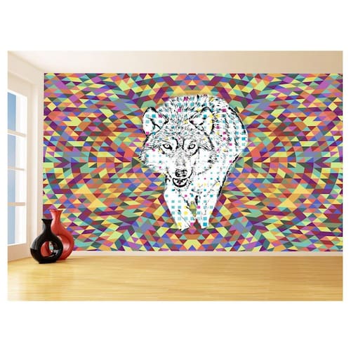 Papel De Parede Animais Pop Art Lobo Colorido 3,5M Pxa575