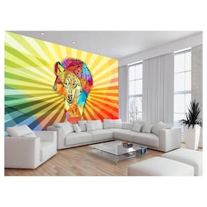Papel De Parede Animais Pop Art Lobo Colorido 3,5M Pxa598