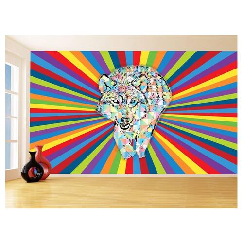 Papel De Parede Animais Pop Art Lobo Colorido 3,5M Pxa606
