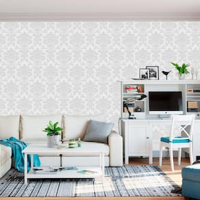 Papel de parede arabesco fundo cinza adesivo quarto sala