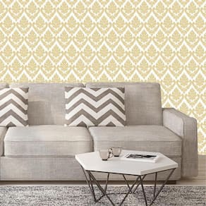 Papel de parede arabesco ouro e branco adesivo sala quarto