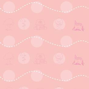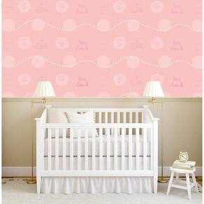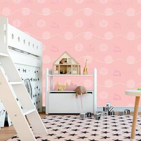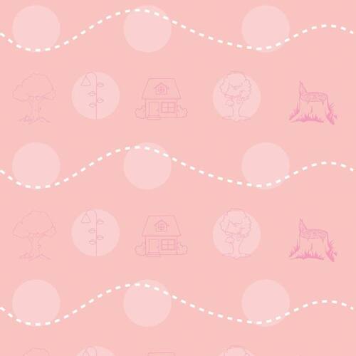 Papel De Parede Arvore E Casa Fundo Rosa Quarto Infantil