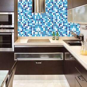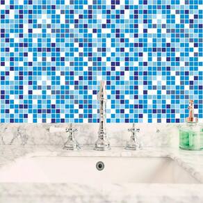 Papel de parede azul branco preto adesivo cozinha banheiro