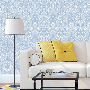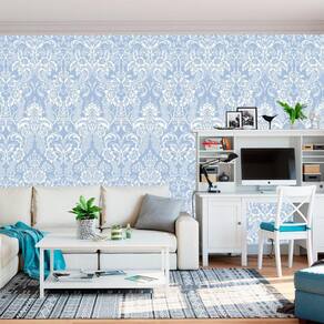 Papel de parede azul celeste arabesco adesivo sala quarto