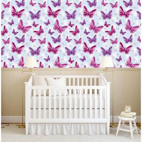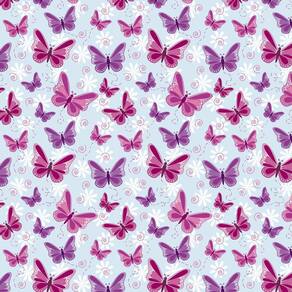 Papel De Parede Azul Claro Com Borboletas Vermelhas E Lilas